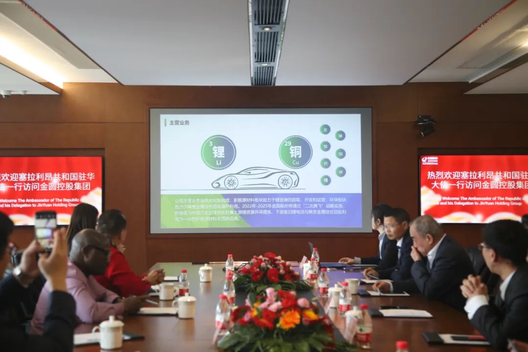 交流洽談中,趙總表示,金圓發展25余年,從民營企業到上市公司,離不開各界伙伴的支持和幫助。2021年金圓股份將新能源材料鹽湖提鋰作為核心的轉型方向,以“國內與海外并舉”的方針為指導方向,僅一年的時間已獲取寶貴的經驗和顯著的成果。中塞兩國是全面戰略合作伙伴關系,多年來經貿往來快速發展,合作領域成果豐碩、友好民意基礎牢固,金圓將積極響應國家號召,將從團隊、資金、技術、產業鏈等多方面與塞拉利昂建立全方位的合作關系,為兩國的鋰礦行業發展貢獻智慧、為中塞兩國人民的友誼添磚加瓦!