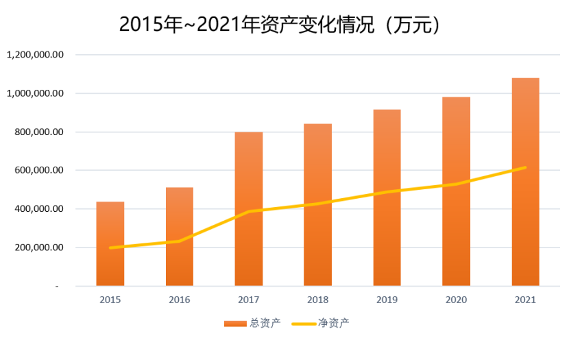 總資產(chǎn)從40多億元增長到100多億元,凈資產(chǎn)增長2倍多,年均增長率達16.6%